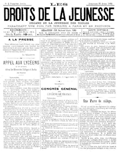 From the laws of 1881 which established true freedom of the press, the high school newspapers multiply. Youth Rights, a weekly, made history in 1882. The newspaper addressed itself directly to the minister in charge of school education, made proposals on the content of the programmes. He appeals to the major newspapers asking them to open a weekly column for him.